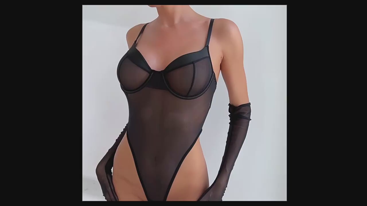 Elevate your style with the Zaavix™ Slim-Fit Mesh Bodysuit with Gloves — a sleek, modern design that blends simplicity with sensuality.